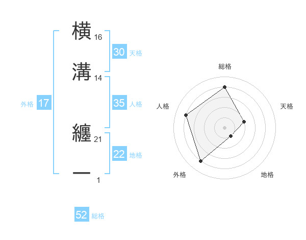 横溝 纏一さんの総格は52画の4点!