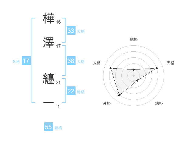 樺澤 纏一さんの天格は33画の4点!