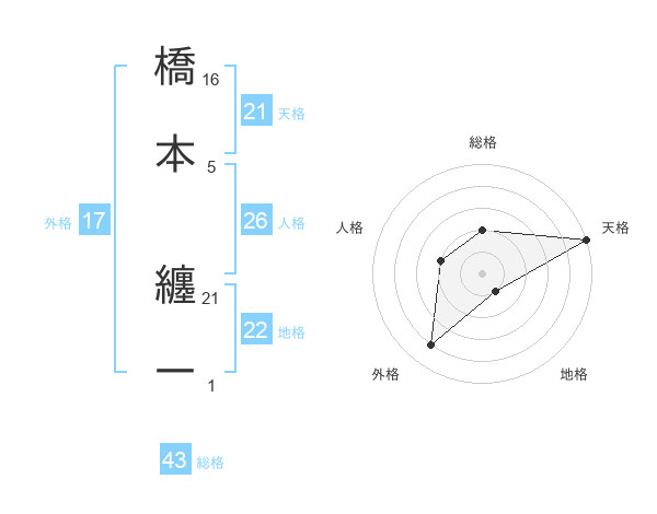 橋本 纏一さんの天格は21画の5点!