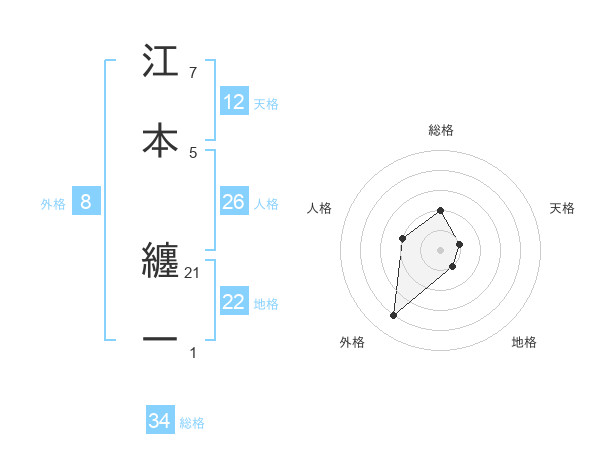 江本 纏一さんの天格は12画の1点!