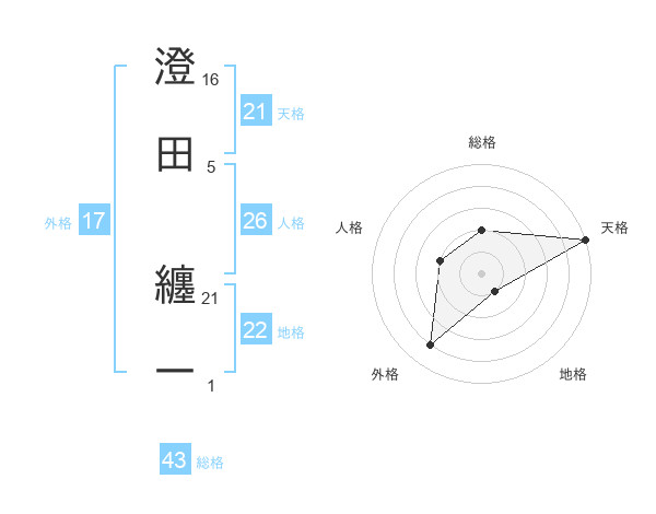 澄田 纏一さんを姓名の画数から五運を鑑定