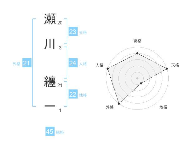 瀬川 纏一さんの天格は23画の5点!