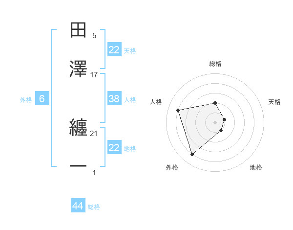 田澤 纏一さんの総格は44画の2点!