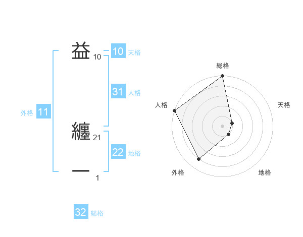 益 纏一さんの地格は22画の1点!
