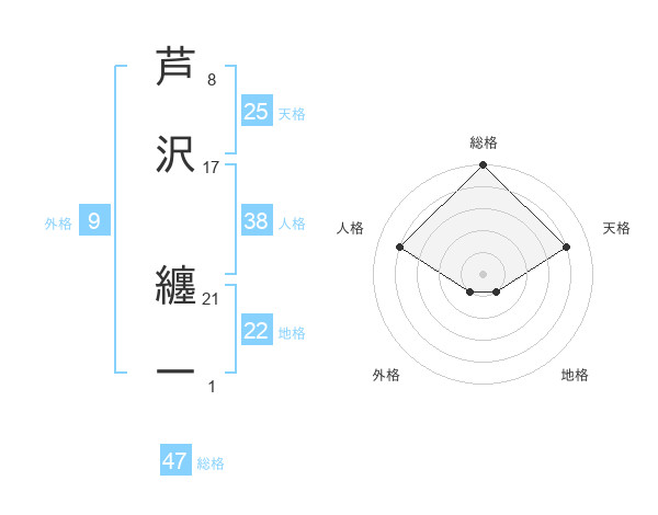 芦沢 纏一さんを姓名の画数から五運を鑑定