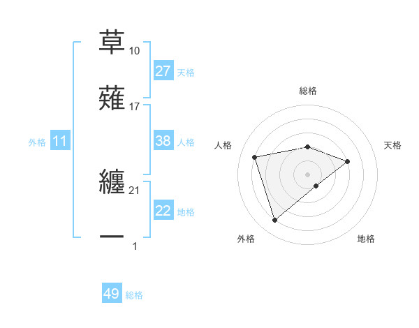 草薙 纏一さんの外格は11画の4点!