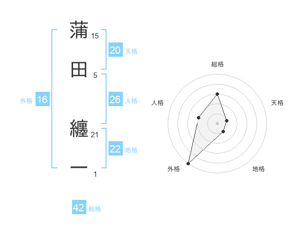 蒲田 纏一さんを姓名の画数から五運を鑑定