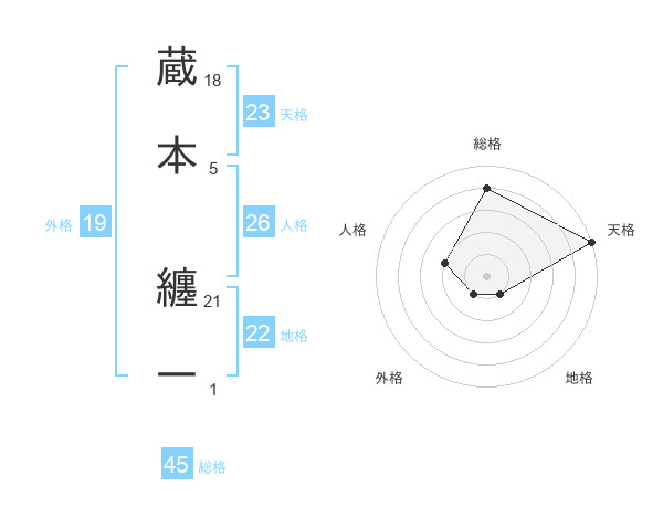 蔵本 纏一さんの天格は23画の5点!