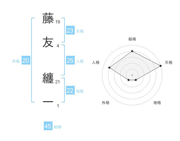 藤友 纏一さんの総格は45画の4点!