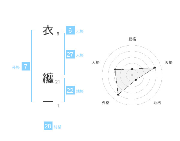 衣 纏一さんの総格は28画の1点