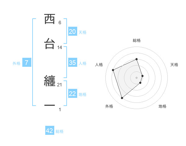西台 纏一さんの総格は42画の3点!