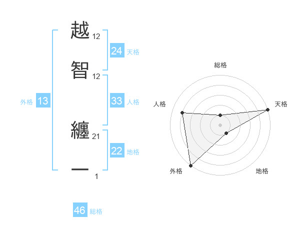 越智 纏一さんの天格は24画の5点!