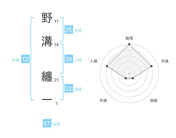 野溝 纏一さんの総格は47画の5点!