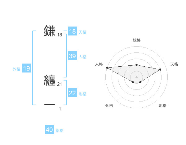 鎌 纏一さんの地格は22画の1点!