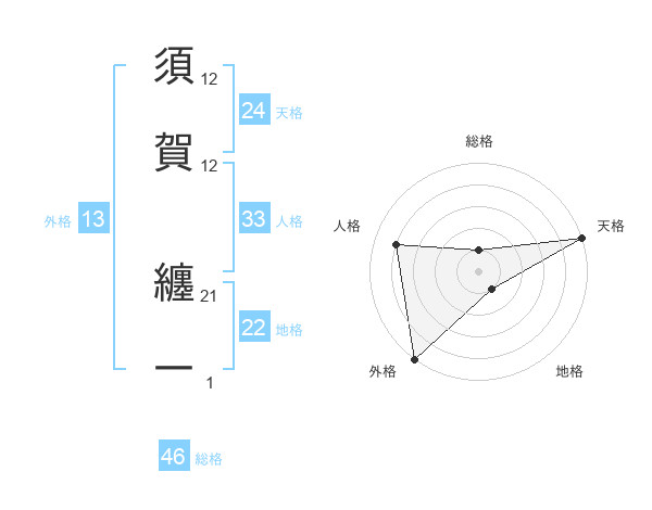 須賀 纏一さんを姓名の画数から五運を鑑定