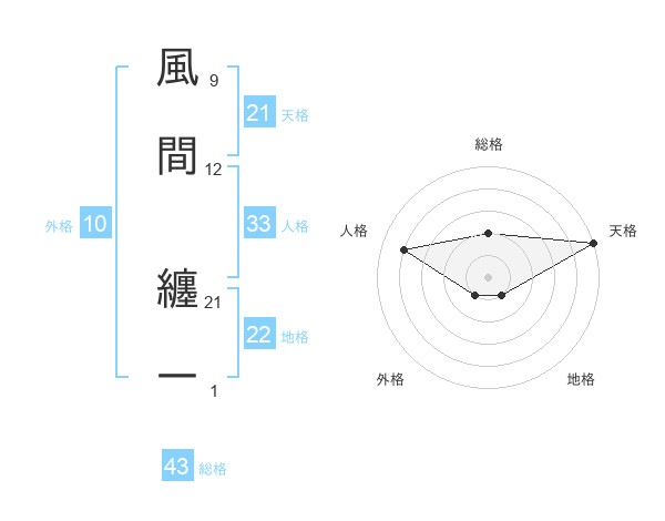 風間 纏一さんの総格は43画の2点!