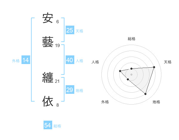 安藝 纏依さんを姓名の画数から五運を鑑定