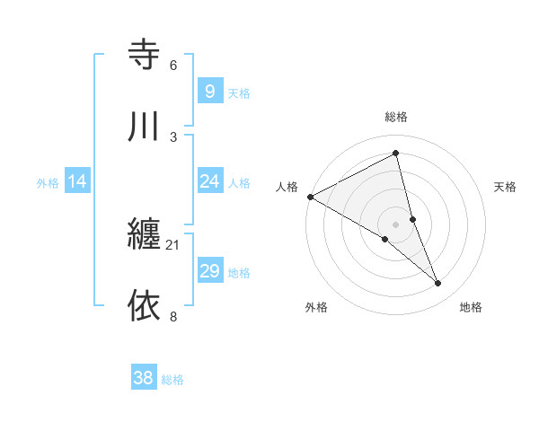 寺川 纏依さんの総格は38画の4点!