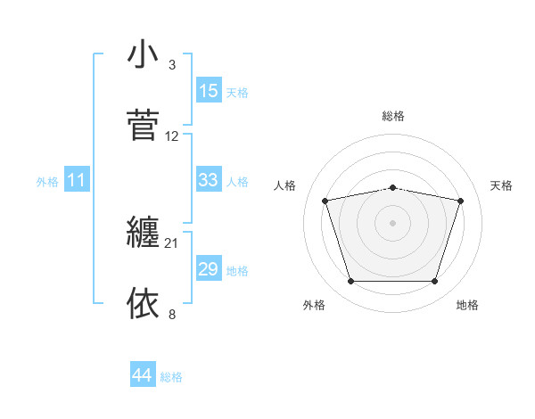 小菅 纏依さんを姓名の画数から五運を鑑定