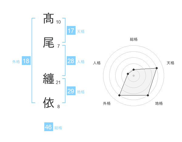 髙尾 纏依さんの天格は17画の4点!