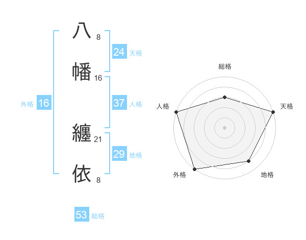 八幡 纏依さんを姓名の画数から五運を鑑定
