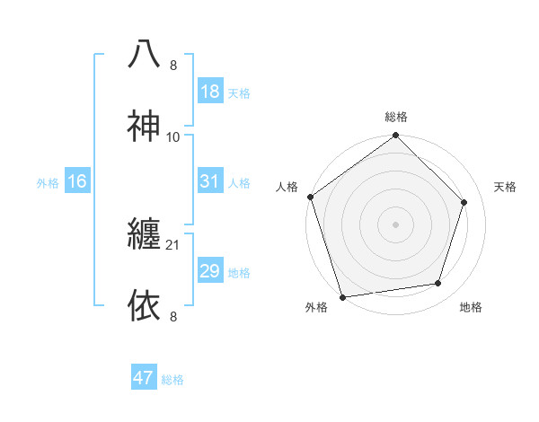 八神 纏依さんの総格は47画の5点!