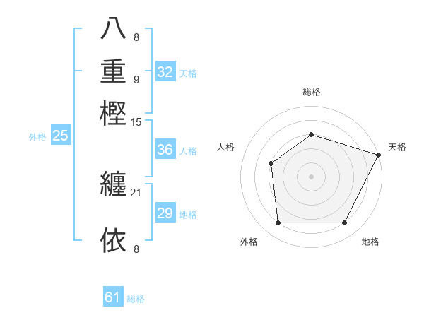 八重樫 纏依さんを姓名の画数から五運を鑑定