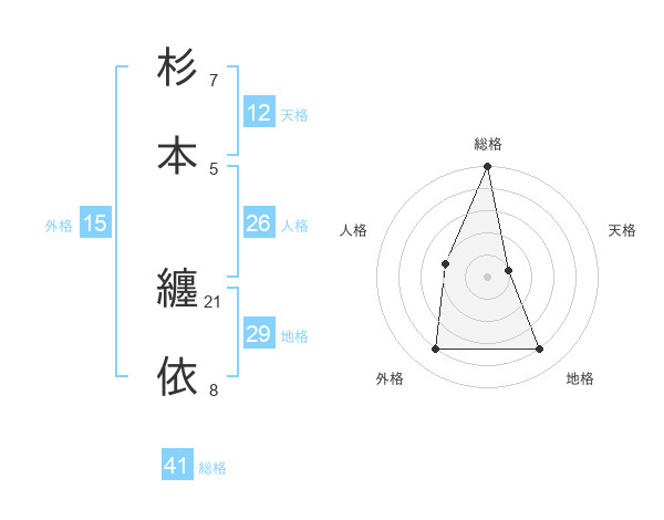 杉本 纏依さんの総格は41画の5点!