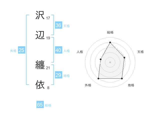 沢辺 纏依さんの総格は65画の4点!
