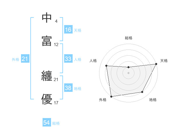 中富 纏優さんの外格は21画の5点!