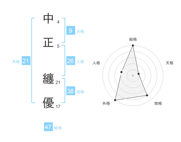 中正 纏優さんの外格は21画の5点!
