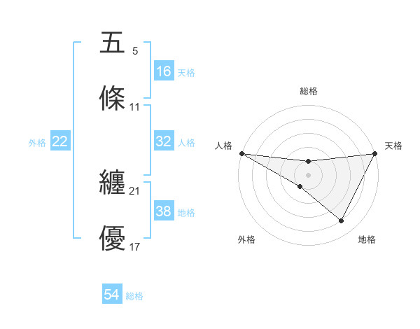 五條 纏優さんの天格は16画の5点!