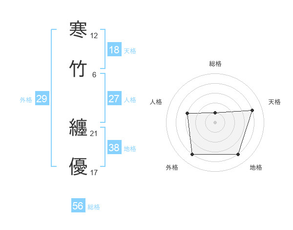 寒竹 纏優さんの地格は38画の4点!