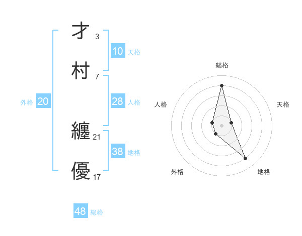 才村 纏優さんの総格は48画の4点!