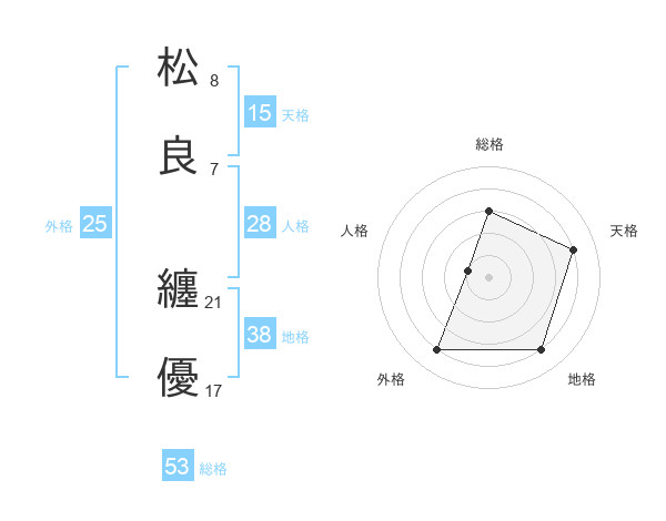 松良 纏優さんの総格は53画の3点!