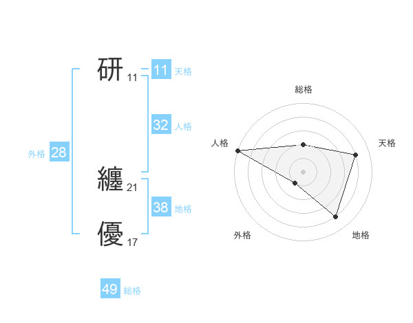 研 纏優さんの外格は28画の1点!