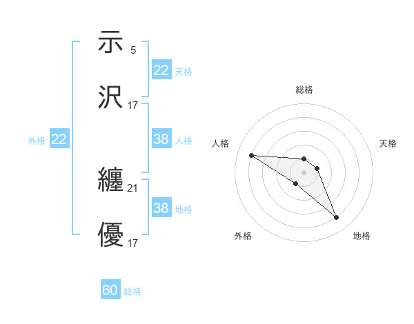 示沢 纏優さんを姓名の画数から五運を鑑定