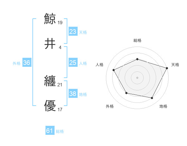鯨井 纏優さんの天格は23画の5点!