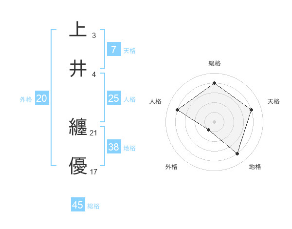 上井 纏優さんの総格は45画の4点!
