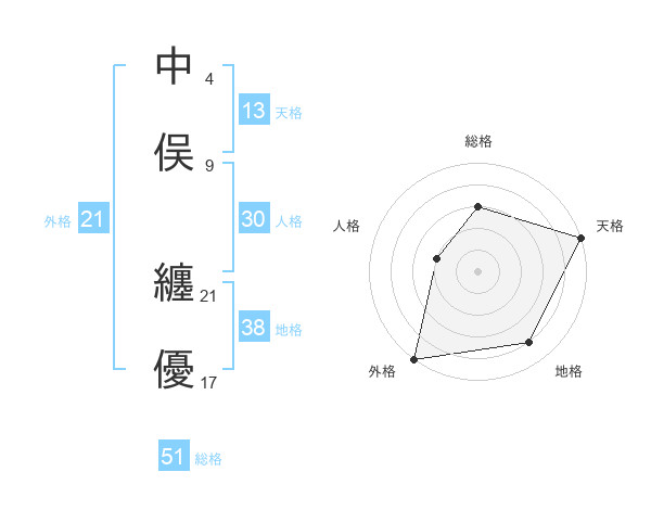 中俣 纏優さんを姓名の画数から五運を鑑定