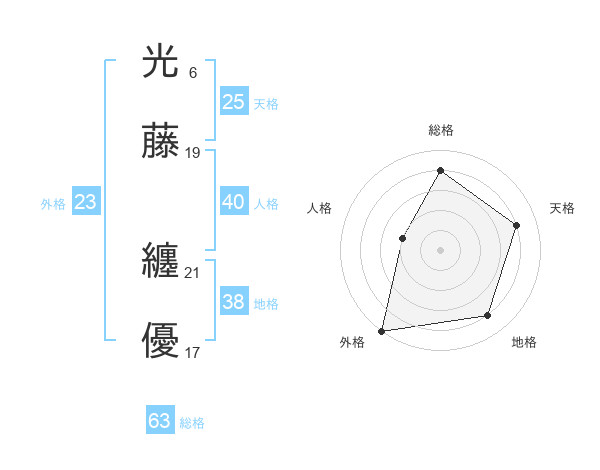 光藤 纏優さんの総格は63画の4点!