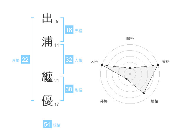 出浦 纏優さんの外格は22画の1点!