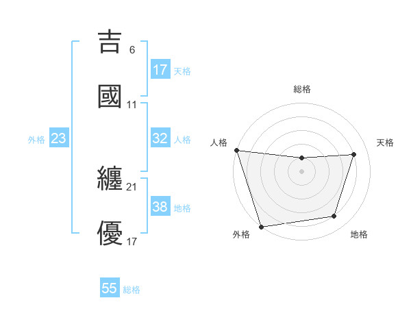 吉國 纏優さんを姓名の画数から五運を鑑定