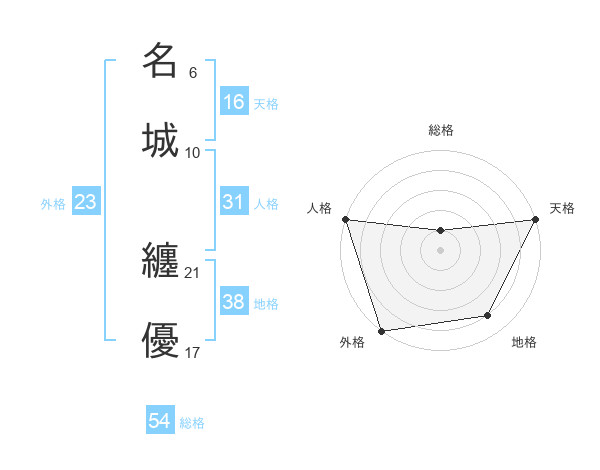 名城 纏優さんの天格は16画の5点!