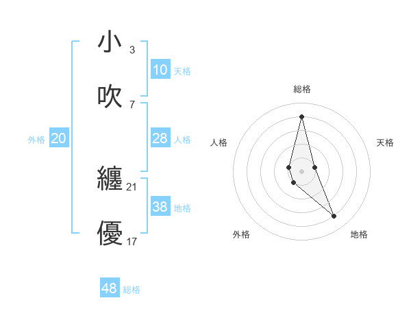 小吹 纏優さんを姓名の画数から五運を鑑定