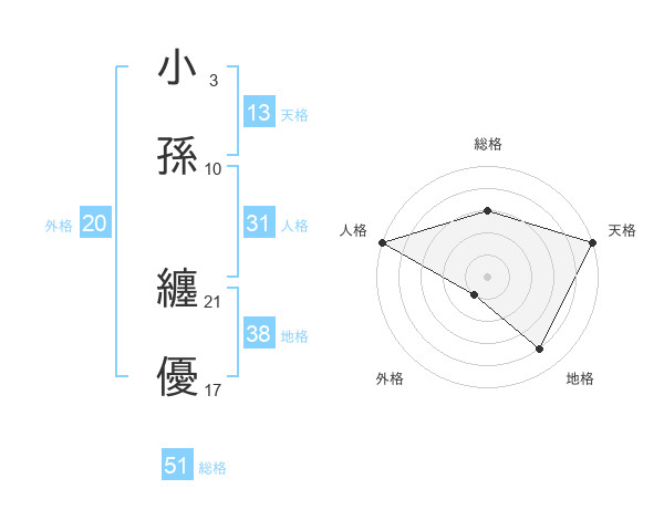 小孫 纏優さんの総格は51画の3点!