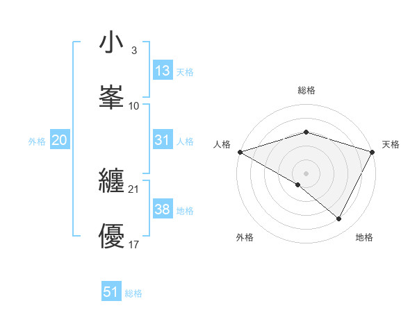 小峯 纏優さんの総格は51画の3点!