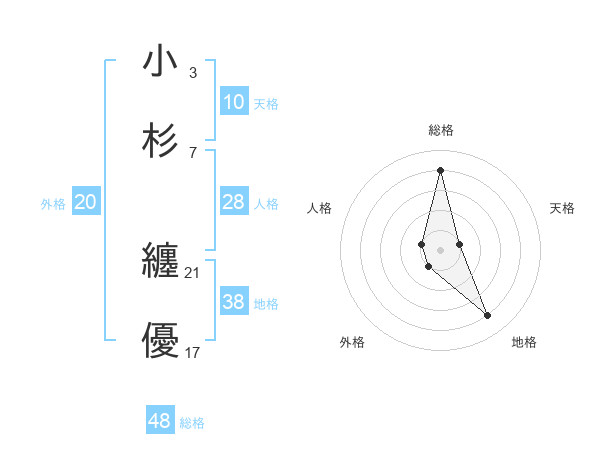 小杉 纏優さんを姓名の画数から五運を鑑定