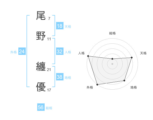 尾野 纏優さんの総格は56画の1点!