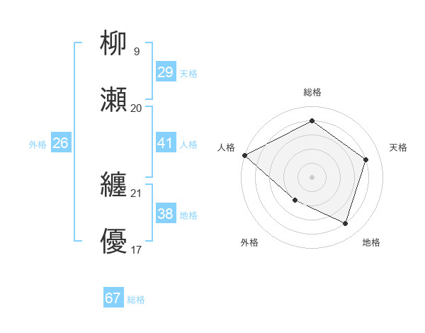 柳瀬 纏優さんの天格は29画の4点!